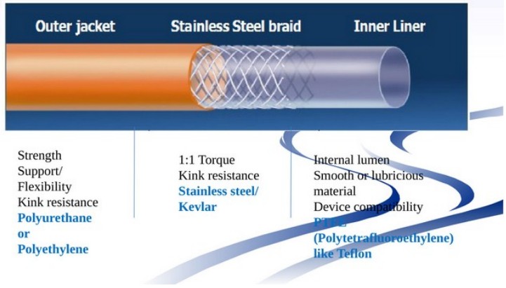 Struktura "podšívka vrstvy zesílení kabátu": U některých špičkových zaváděcích trubic je doprostřed přidána výztužná vrstva (jako je drátěný oplet z nerezové oceli), aby se dále zlepšila odolnost zaváděcí trubice v ohybu a zalomení.